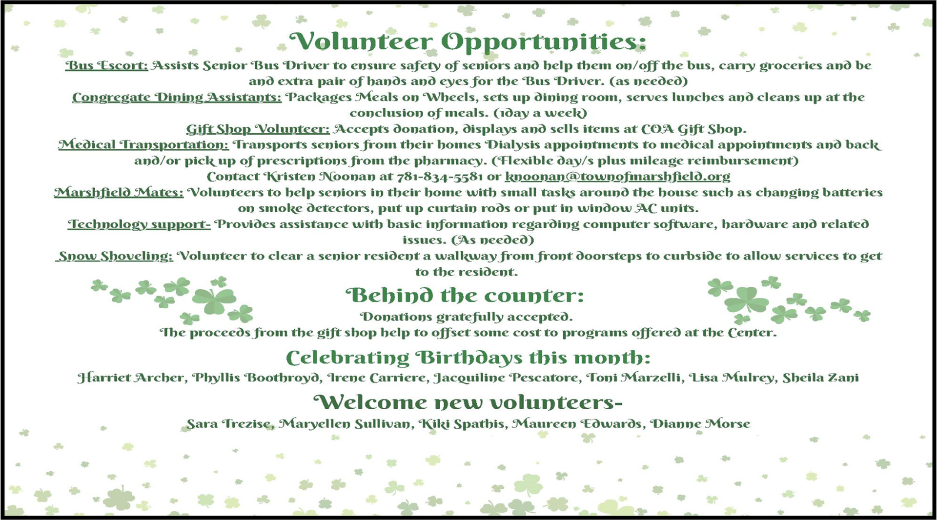 Marshfield Council on Aging Municipal Gift Account